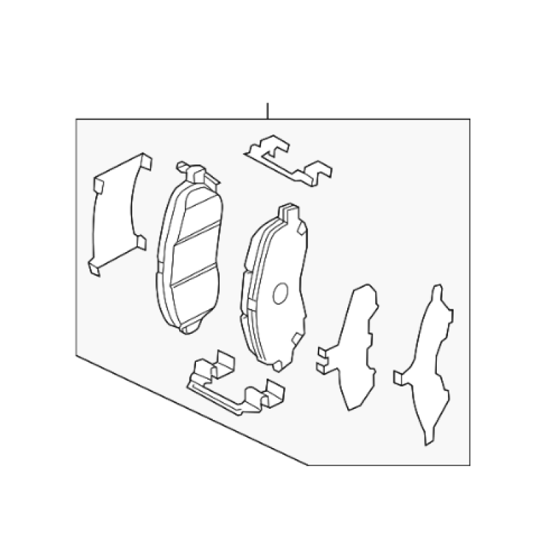 The brake pads are installed inside the front brake calipers, where they press against the brake discs to convert vehicle kinetic energy into heat during braking.